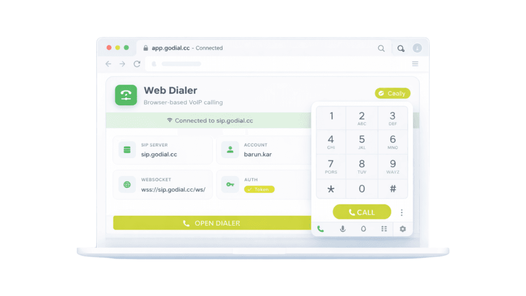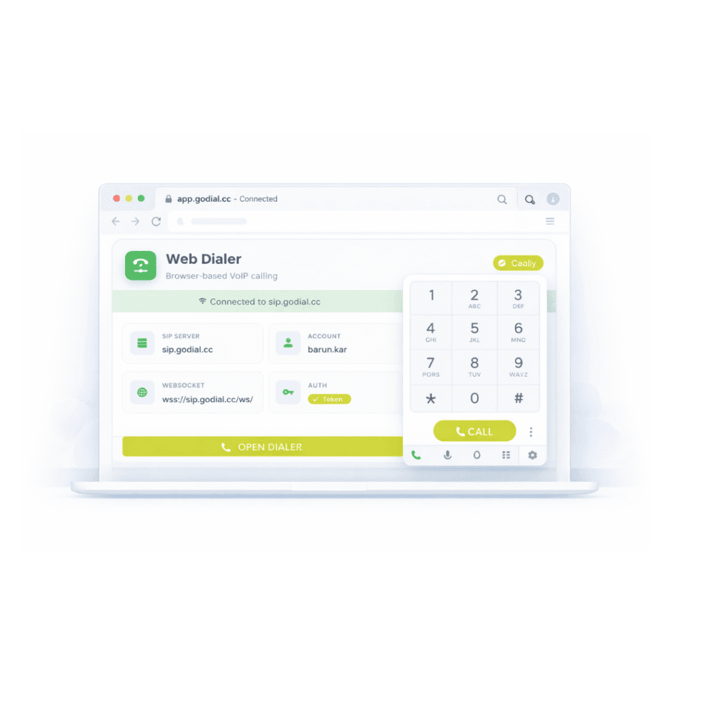 GoDial PBX lets teams make and manage business calls directly from the browser, without desk phones, softphones, or additional installations.