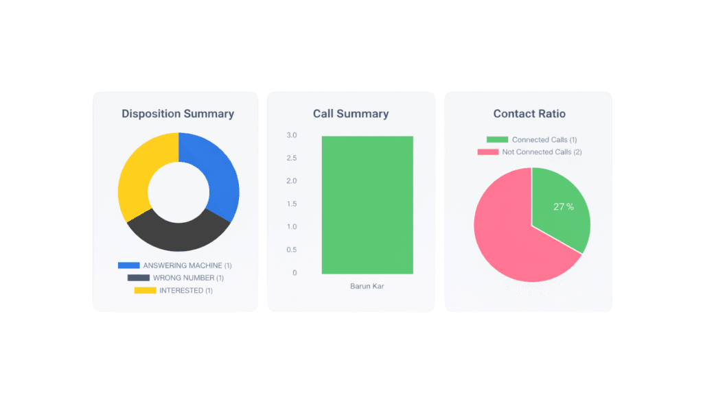 Capture calling activity, outcomes, and usage across teams within the same system used for CRM-based calling with GoDial.
